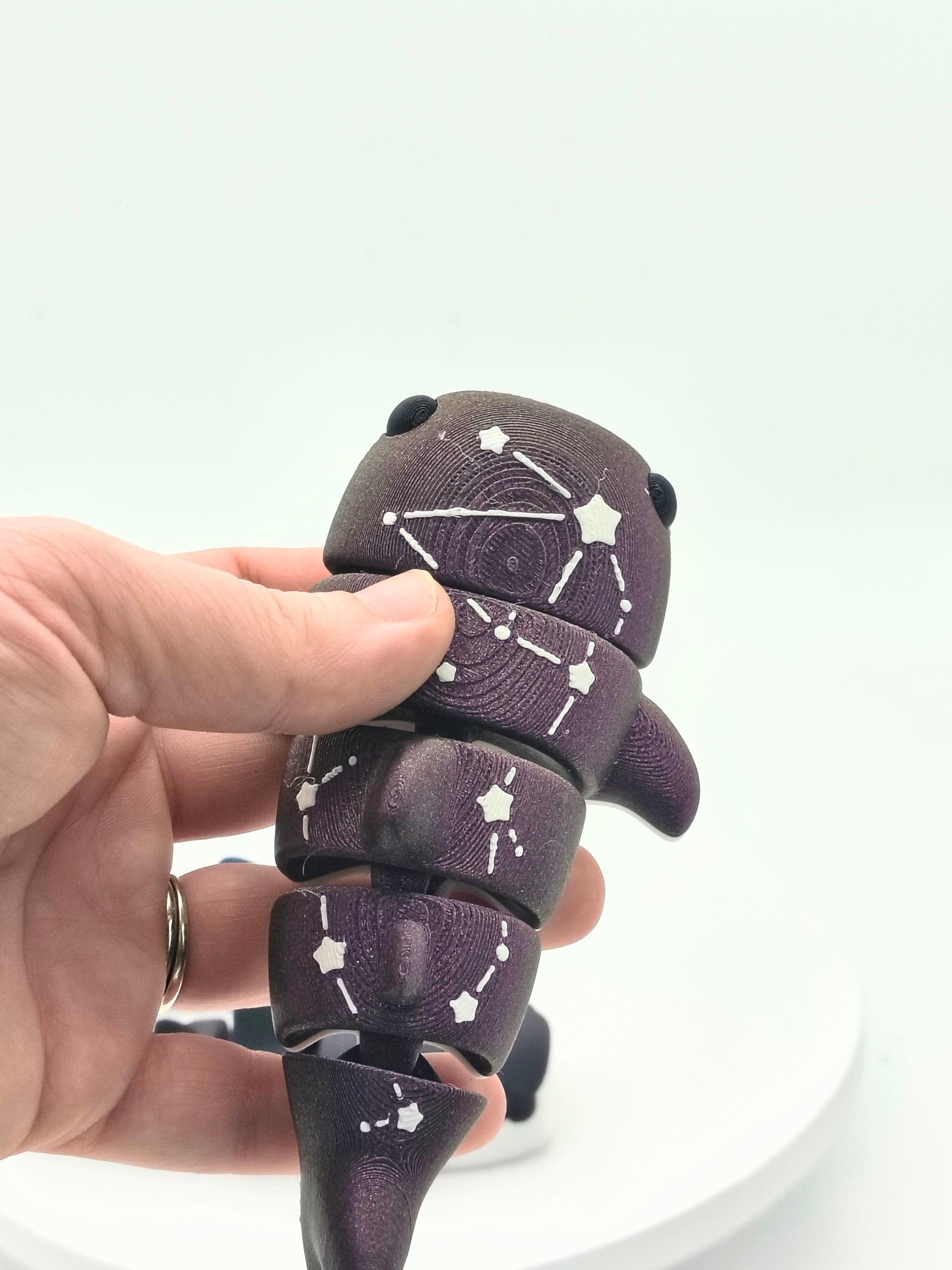 Introducing the Galaxy Whale Shark, a 3D printed masterpiece that brings the beauty of the sea and the vastness of space together. This quirky and playful figurine will add a unique touch to any room, making it a must-have for any collector or ocean-lover. (Whale of a good time guaranteed!)